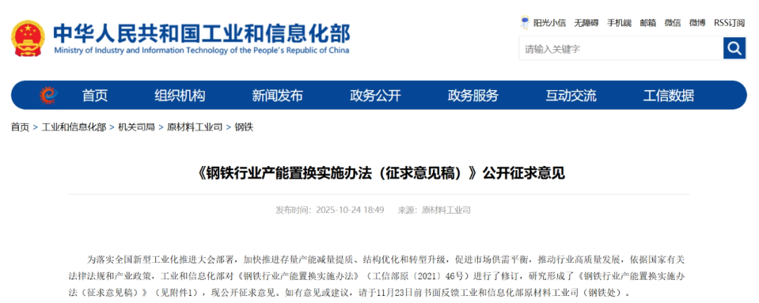 工信部網(wǎng)站10月24日消息,工業(yè)和信息化部對《鋼鐵行業(yè)產(chǎn)能置換實施辦法》進(jìn)行了修訂,研究形成了《鋼鐵行業(yè)產(chǎn)能置換實施辦法(征求意見稿)》,現(xiàn)公開征求意見。
